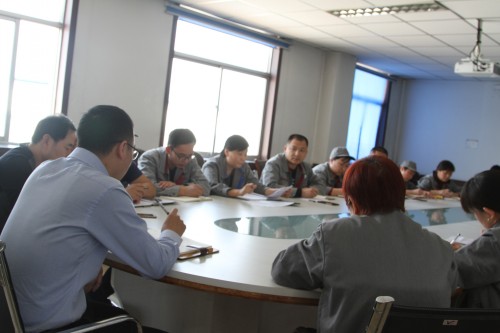 3月12日下午,由公司生技部牽頭組織的標準化生產推進專題討論會議在技術中心二樓會議室舉行。公司副總經理李大松主持,副總工程師劉照臣、生技部主管,品控部主管,各車間主管及主管助理、公司工會參加了次會議。