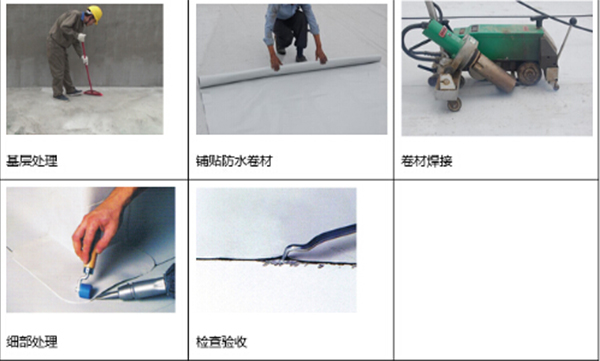 基層清理——鋪貼防水卷材——卷材焊接 ——細(xì)部處理—— 組織驗(yàn)收